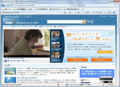 Internet Explorer専用のツールバー。インターネットに接続していればどこからでも、Windows Live にいつでも簡単にアクセスできる。