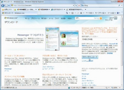 | 画面1 Windows Liveのサイトで[今すぐダウンロード!]をクリック |
