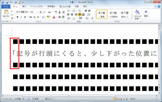 文章を作成していて、行頭に『「』や『(』などが来た場合、普通の文字よりもちょっと下がった位置に表示されてしまう。先頭から入力しているのに、なんだかわざとスペースを入れているみたいに見えて、あまりかっこうよくないものだ。実は、この現象を回避する方法があるので紹介しよう。