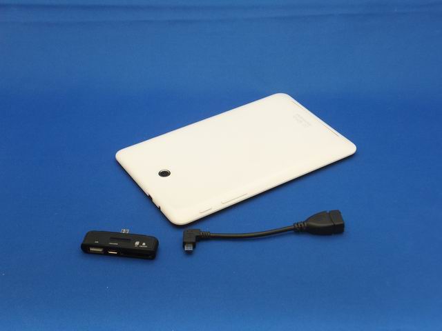 また、Nexus 7のmicroUSBはOTG(On-The-Go)に対応していたためUSBホストとしての利用が可能だった。OTGケーブルを使ってマウスを接続できた。またUSBやメモリーカードスロットを持つ多目的なUSB機器などを使って外部ストレージからデーターを読み取ったりといったことができた。同じようにOTGケーブルなどを試してみたが、残念なことにUSBホストには、現状ではなれないようだ。