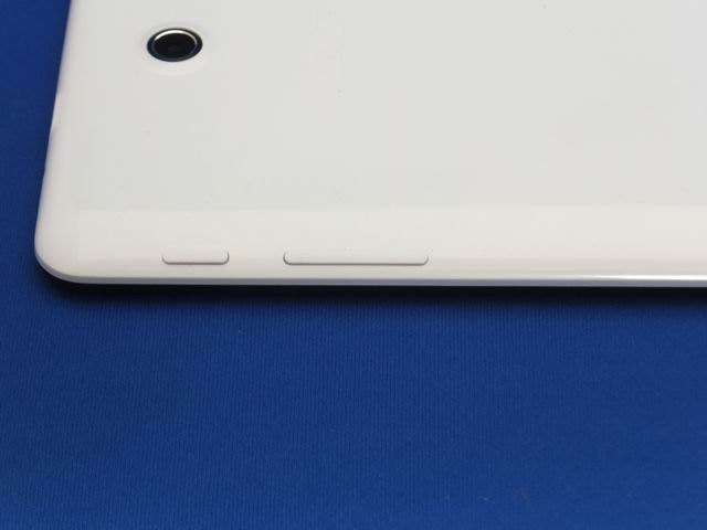 | 右側面に電源および音量調整ボタンがある。 |