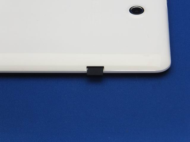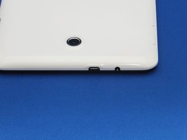 また、本体左側の側面にmicroSDスロットが用意されている。これは大変うれしい機能だ。Googleはストレージ等の拡張を好ましいとは考えていなかったためNexus 7では、内蔵ストレージがすぐにパンクしてしまうという問題があった。しかし、ASUS MeMO Pad HD7であれば32GBまでのmicroSDを利用できるのでストレージが満杯なんてことはなくなった。なお本体背面側下部に内蔵スピーカー(ステレオ)から音が出るようにスリットがきざまれている。