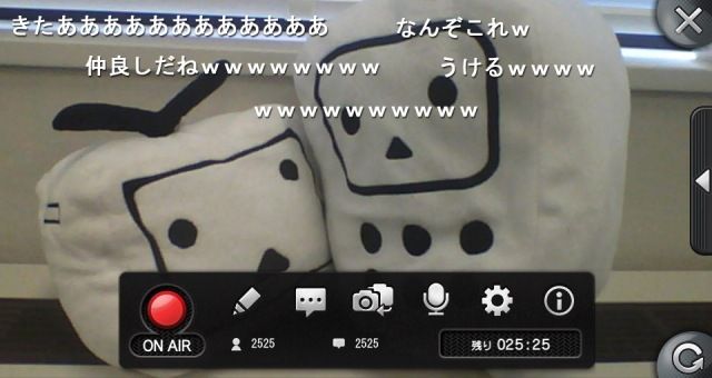 ・カメラ切り替え・配信音量設定・コメントリスト・アンケート機能