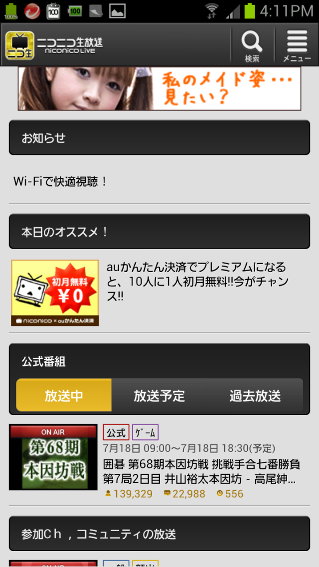 ■auスマートパス会員限定「ニコニコ生放送プレイヤー for au」提供開始