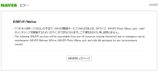 なお7月19日の18時より新しいパスワードの設定機能を設置し、サービスを再開するとしていたが7月20日午前5時時点で、まだメンテナンスモードである。NAVERアカウントを所有しているのであれば、早急にパスワードを再設定するといいだろう。