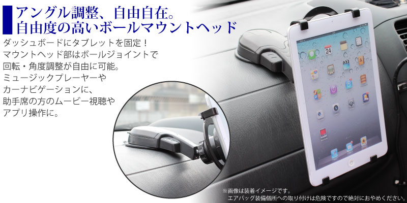 マウントヘッド部はボールジョイント構造になっているので回転や角度調整が自由に可能になっている。ミュージックプレーヤーやカーナビゲーションとしての利用時に見やすい角度に固定することが可能になっている。助手席に座っている人が動画視聴するようなときやアプリ操作時にも自在な角度に調整できる。