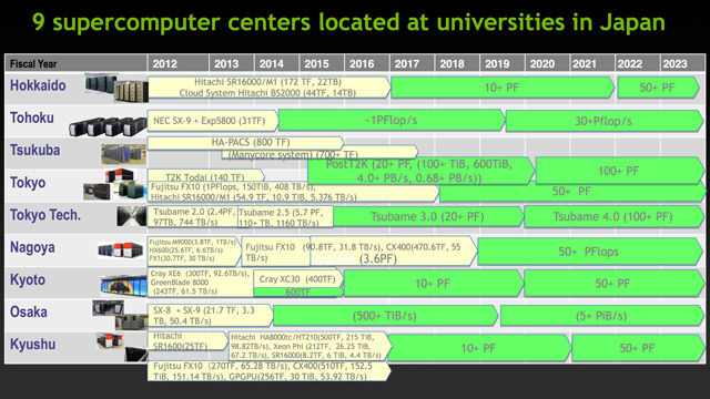 同様に国内の各大学のスパコンも定期的にハードウェアが更新され処理能力を向上させていく。そんな各大学のスーパーコンピューターの現状および、今後の更新予定がGTC Japanで公開された。大学に入ったら少しでも高速なスパコンを利用して研究したいと考えるような受験生やそうした受験生を抱えるお父さんお母さんには注目の情報だろう。