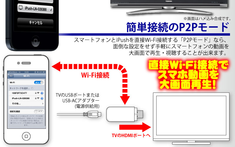 ■製品名:HDMI ワイヤレスムービーアダプター「iPush」