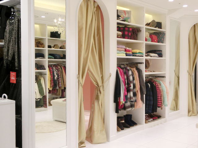 | “ワンダークローゼット”の中に、3つのフィッティングルームがある。 |