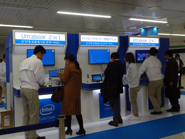 東京では11月21日から22日かけて同イベントが東京駅のイベントスペースで行われた。東京駅のエキナカということもあり、多くの通勤や出張客などが足を止めていた。一般的な「タッチアンドトライイベント」と異なるのは、最新製品の体験は。まずアンケートによって、その人の使い方を調べ、それに合わせたデモなどが行われる点だ。大きく分けて、2-in-1デバイスの紹介とタブレットの紹介があり、それぞれ異なるデモが実施される。