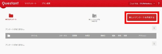 | まずは「新しいアンケートを作成する」をクリックする。 |