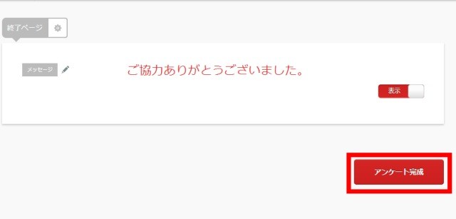 | 各質問を作成したら「アンケート完成」をクリックする。 |