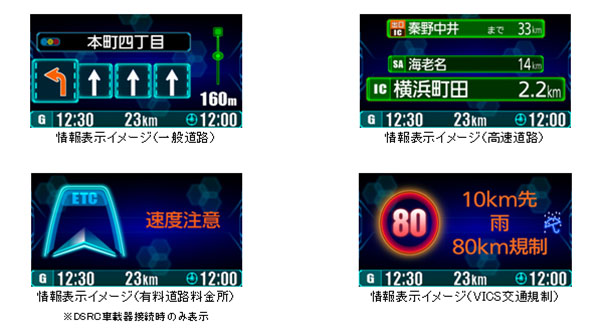 さらにドライバーが必要とする情報を大きく、かつわかりやすく表示してくれるのもポイントだ。ドライバーには、地図情報や経路情報だけでなく、その場で必要度の高い情報を提供してくれる。視認性も考慮されており運転中も直感的に理解できるようになっている。