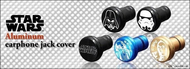ライトセーバー型モバイルバッテリー、iPhoneケース&イヤホンカバーは高価で買えないという人に単体販売のイヤホンジャックカバーはいかがだろう。製造方法は同じくジュラルミン無垢材からの削りだしでデザインは「スターウォーズロゴ」、「ダースベイダー」、「ストーム・トルーパー」、「R2-D2」、「C-3PO」の5種類。価格は各1050円(税込)となる。