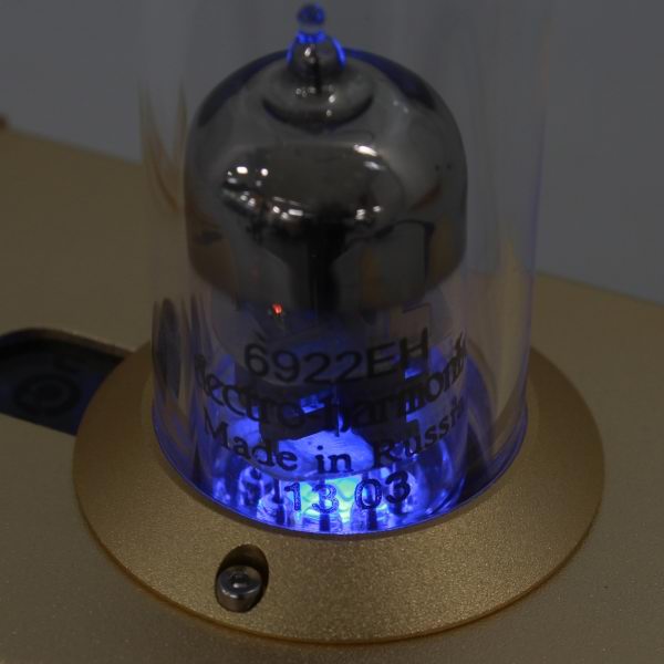 そこでPhilips 6922からElectro Harmonix 6922EHに変更した真空管ヘッドフォンアンプが登場したので紹介しよう。前回発売されていた「DN-84335」のマイナーチェンジモデルとなる。変更内容は、真空管をPhilips 6922からElectro Harmonix 6922EHに変更し、さらにボディカラーをゴールドに変更。