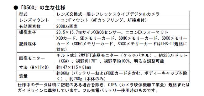 ■「D500」製品情報