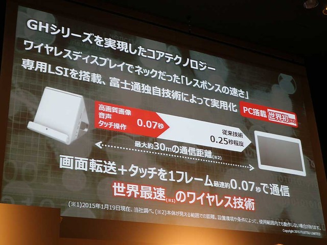 本体とディスプレイで通信可能な距離は30mと意外と長い。これで画面の遅延は0.07秒だ。実際にタッチ操作で使用してみても遅延自体はほぼ体感では認識できなかった。