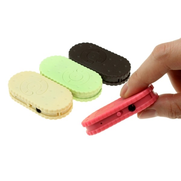 さらにmicroSDを活用する方法として携帯音楽プレーヤーのストレージとして利用するという方法もある。そこで紹介したいのが、見た目がまんまビスケット型のMP3プレーヤー。約10gと超軽量なので、持ち歩きも手軽。「おかし(お菓子)」なオシャレ小物にもなる優れモノ。