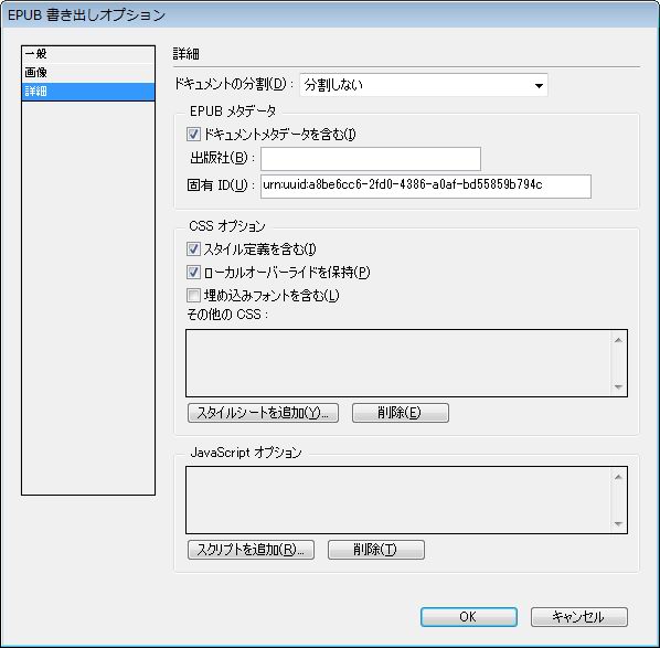CC2014では[EPUB書き出しオプション]パネルで全て指定できるようになっています。